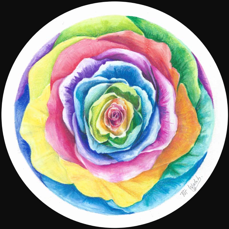 Wisdom has taught me to seek reflected in the outer world a hint of what’s emerging in me. As we engaged in making the space of our home more appealing to prospective buyers, I welcomed the question: what needs to change within me to create a deeper wholeness. A rose bud juxtaposed with a full-blown rose reflects awareness of my potential for fullness (image 1). A different rose of vivid chakra colors holds a vision of the vibrant wholeness I seek (image 2).